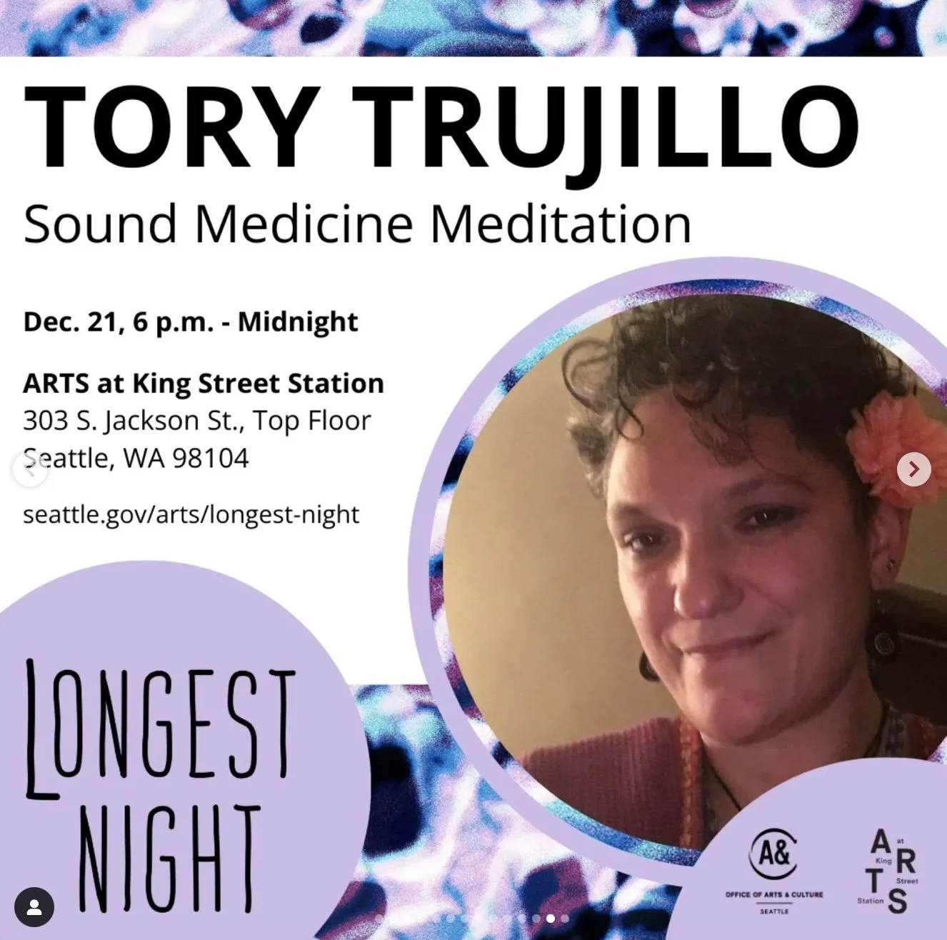 11:00 p.m. – 12:00 a.m. — Sound Medicine Meditation: sound bath to relax, heal, and amplify your intentions with Tory Trujillo